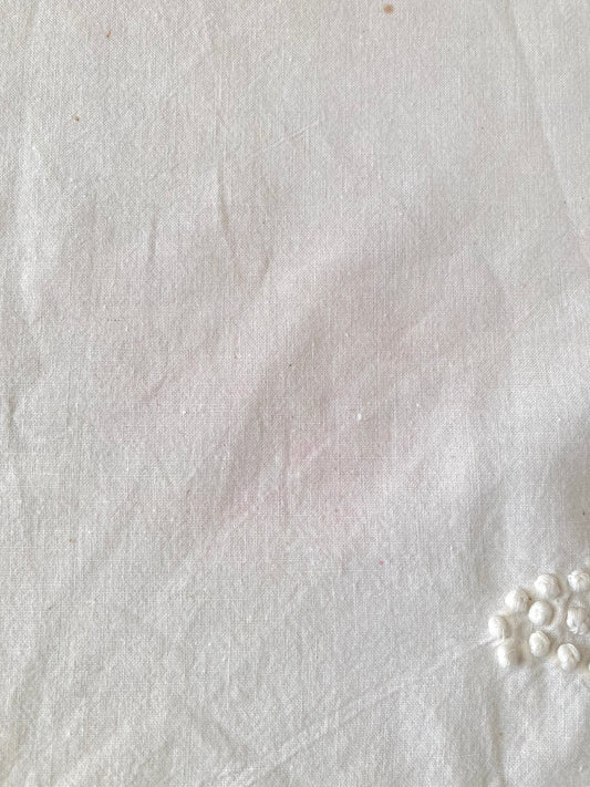 Vintage Ivory Cotton Fringe Dot Embroidered Square Cloth – Multi Use Home Decor