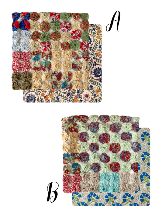 Vintage Yo Yo Quilt Mini Rug Handmade Patchwork Rug Farmhouse Cottagecore Boho Home Decor 97x130cm