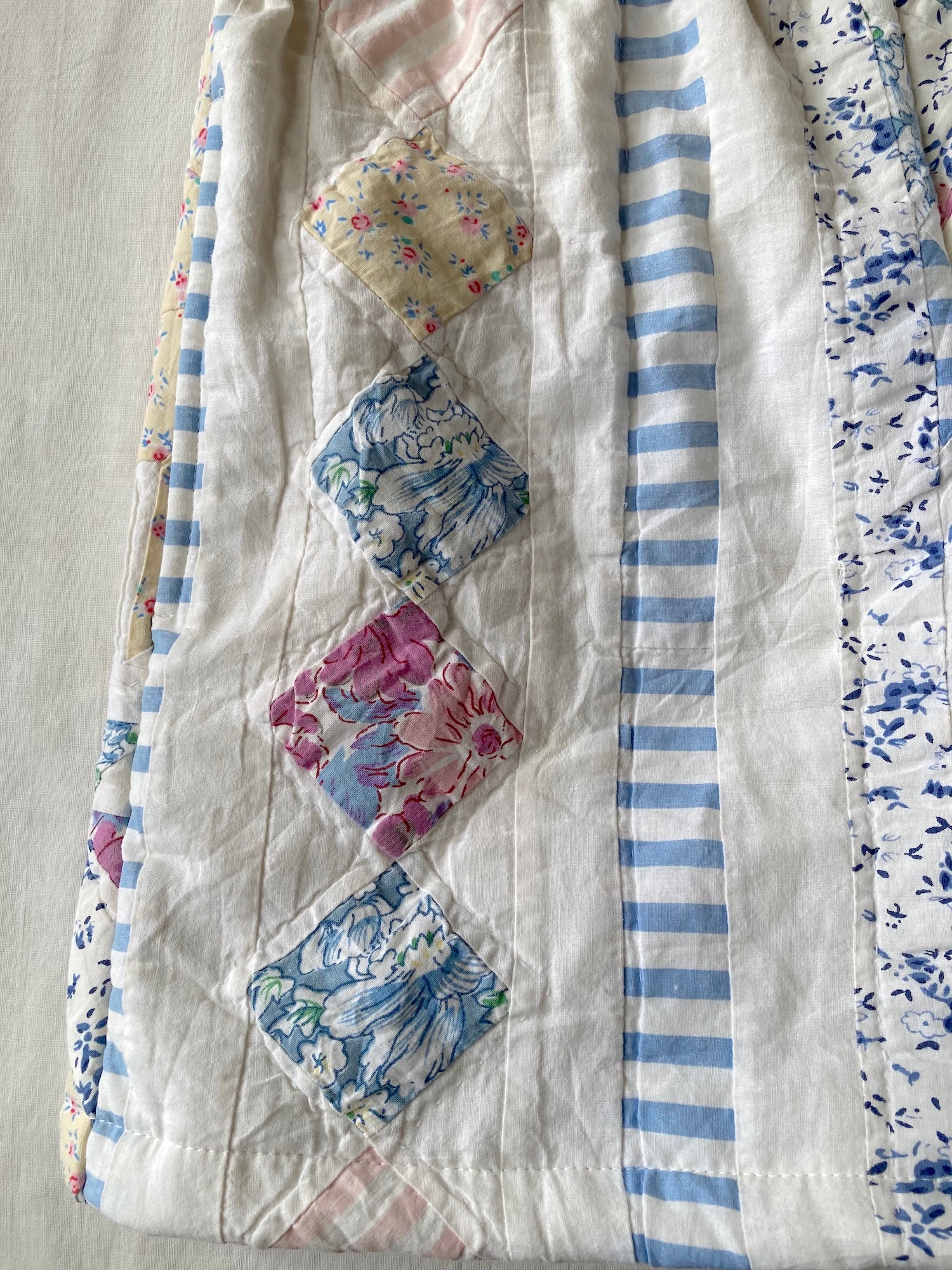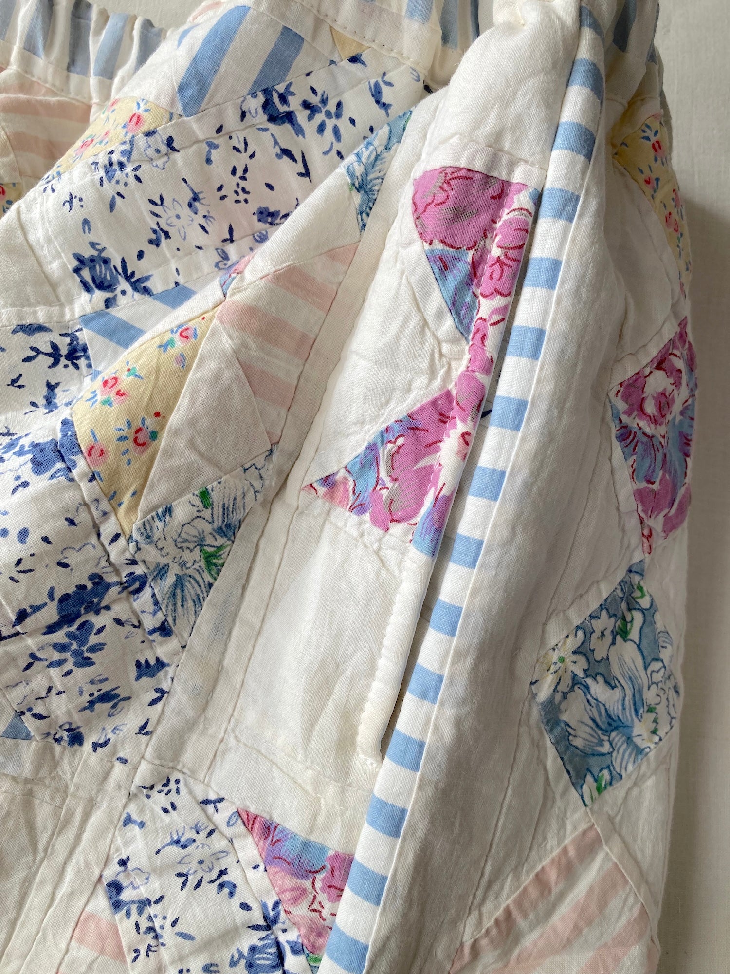 Patchwork-Style Short Pants Made from Vintage Quilted Fabric