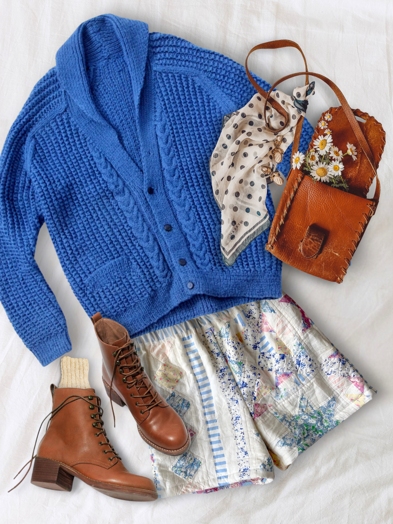 The soft, light-colored patchwork is easy to style, allowing you to enjoy many different looks by adding or keeping your outfit simple.