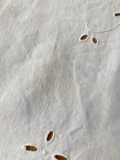 Estimated to be a linen and cotton blend from the 1920s to 1940s, it has a calm, elegant white color and a soft, supple texture that is very pleasant to the touch.