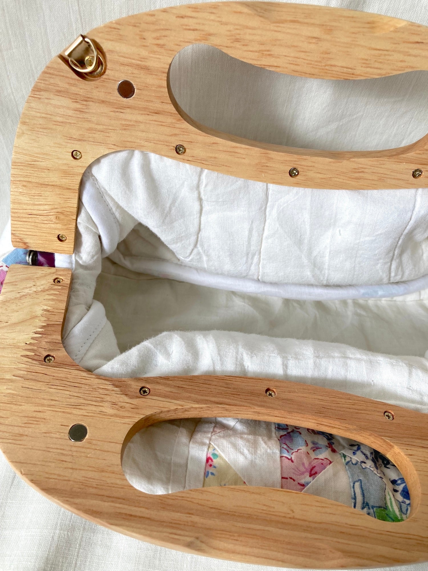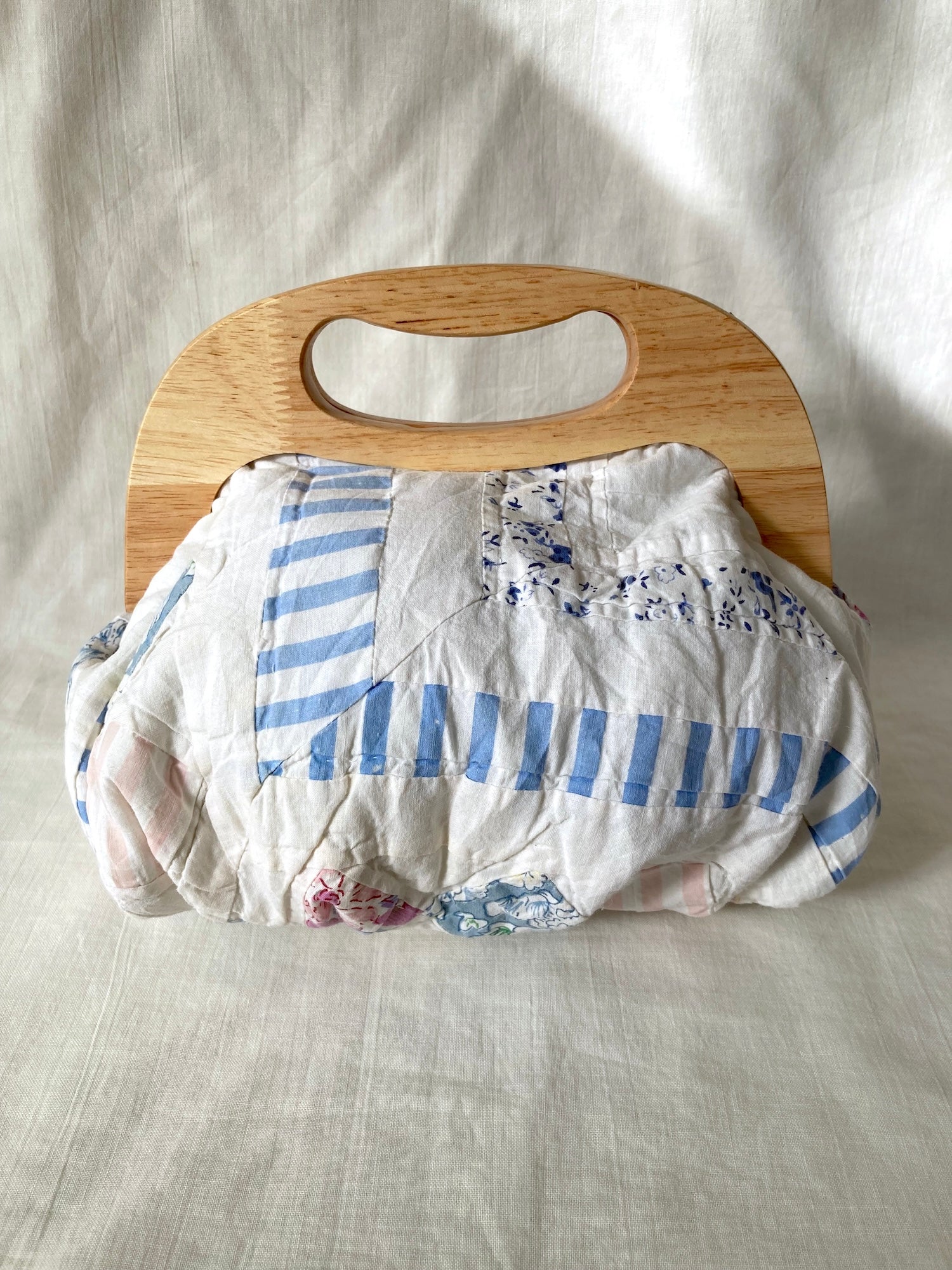 Vintage Quilt Patchwork Clasp Bag with Wooden Handle