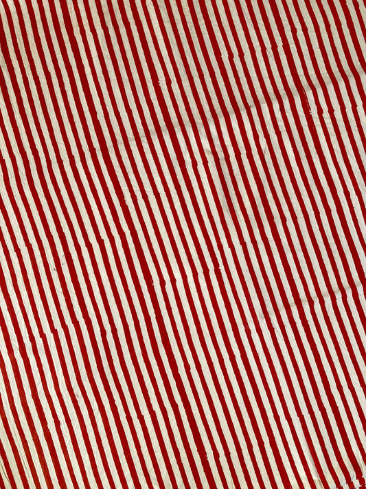 ハンドブロックプリント レッド ストライプ コットンプリント生地 #272-9