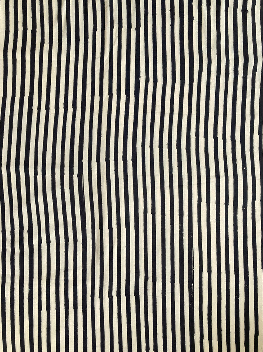 ハンドブロックプリント バグルーブラックストライプ コットン生地 #249-19