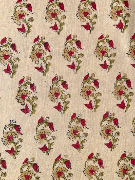 ハンドブロックプリント ゴールデンサンド 花柄 コットン生地 #251-14