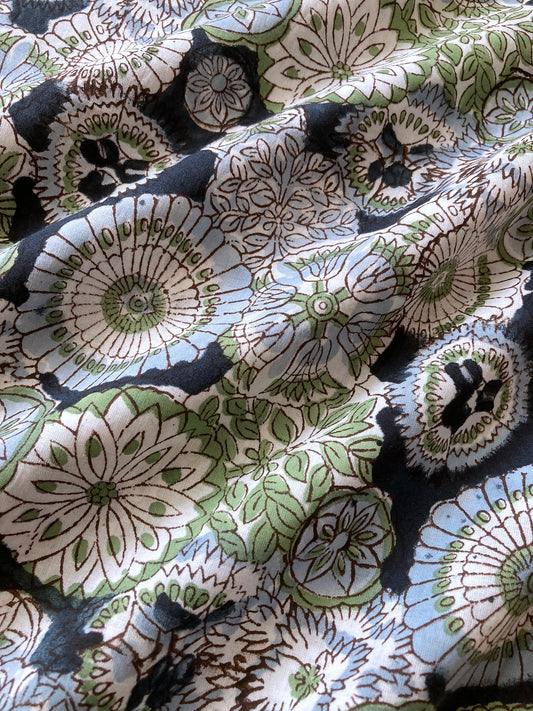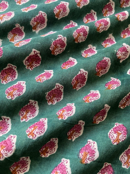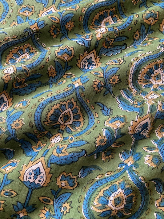 ハンドブロックプリント グリーン コットンプリント生地 #264-13