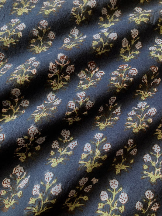 ハンドブロックプリント ダークブルーグリーン コットンプリント生地 #265-12