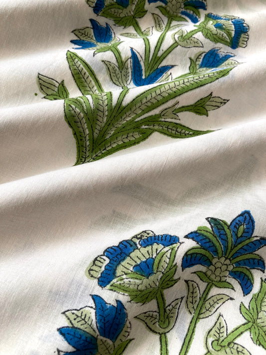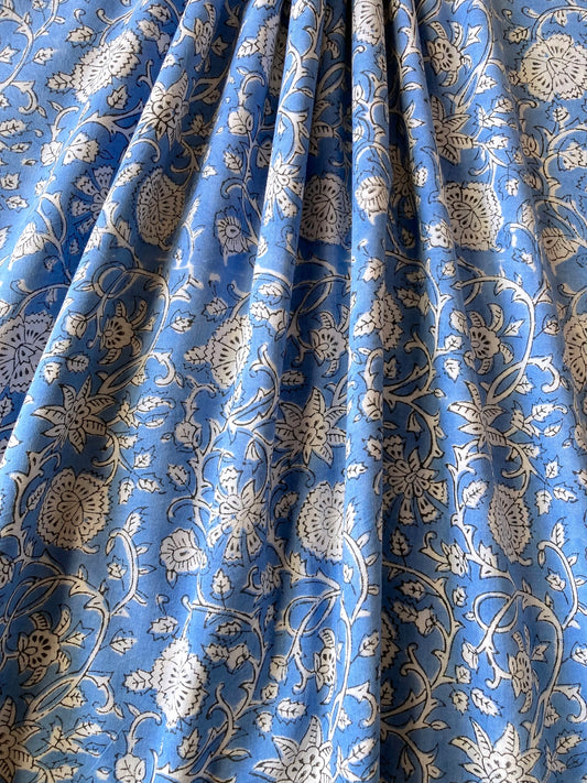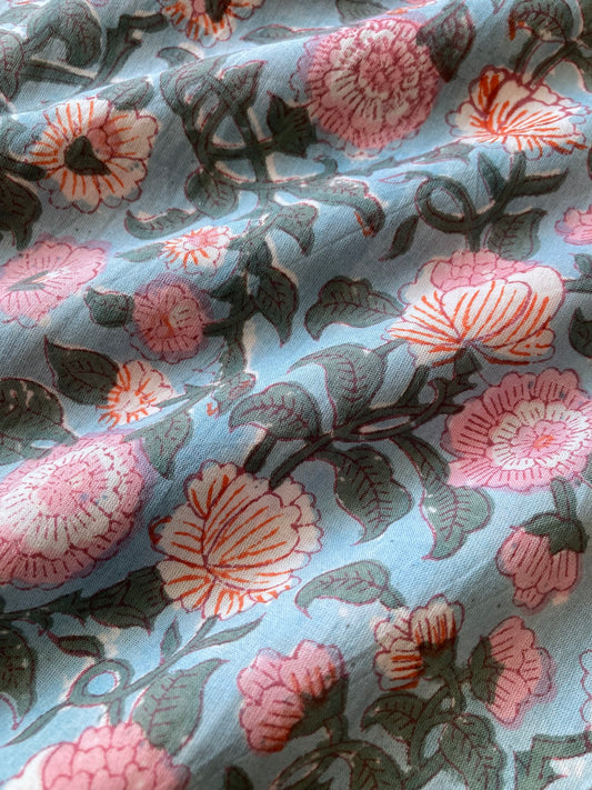 ハンドブロックプリント ライトブルー 花柄 コットン生地 #257-24