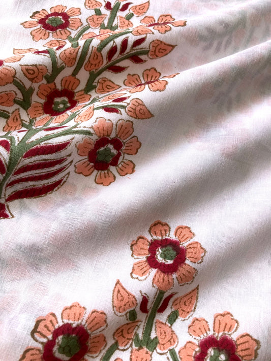 ハンドブロックプリント ホワイト 大花柄 コットンプリント生地 #272-7