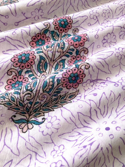 ハンドブロックプリント ホワイト x パープル コットンプリント生地 #272-5