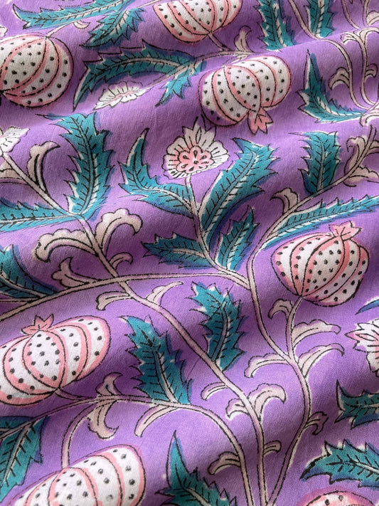 ハンドブロックプリント パープル コットンプリント生地 #272-6
