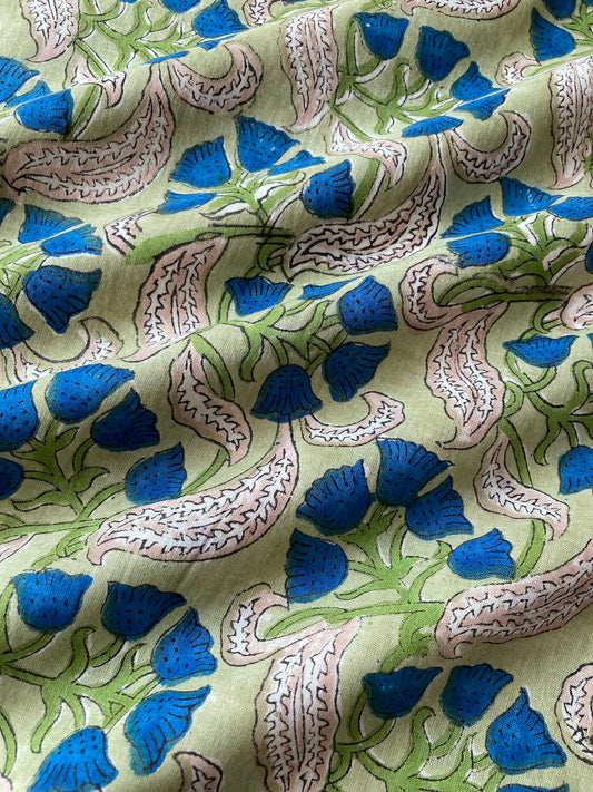 ハンドブロックプリント ライトグリーン コットンプリント生地 #272-8