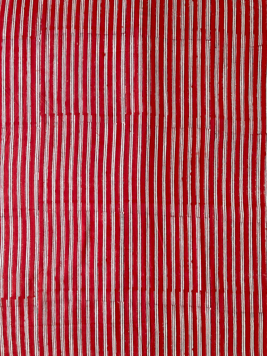 ハンドブロックプリント バグルーレッドストライプ コットン生地 #249-20