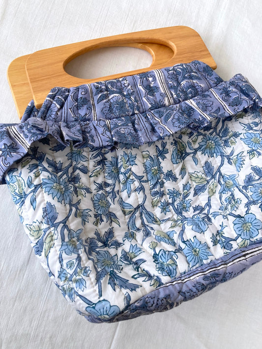 木製 ハンドル ブロックプリント フリル キルティング ハンドバッグ