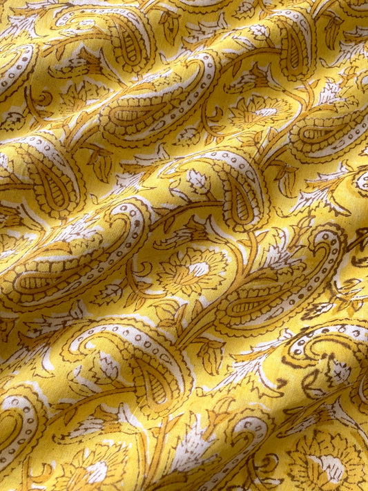 ハンドブロックプリント イエロー ペイズリー コットンプリント生地 #265-10