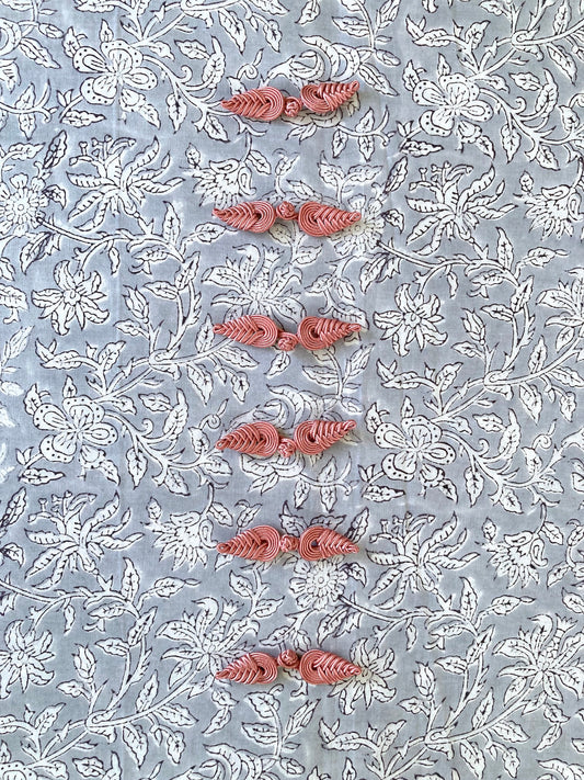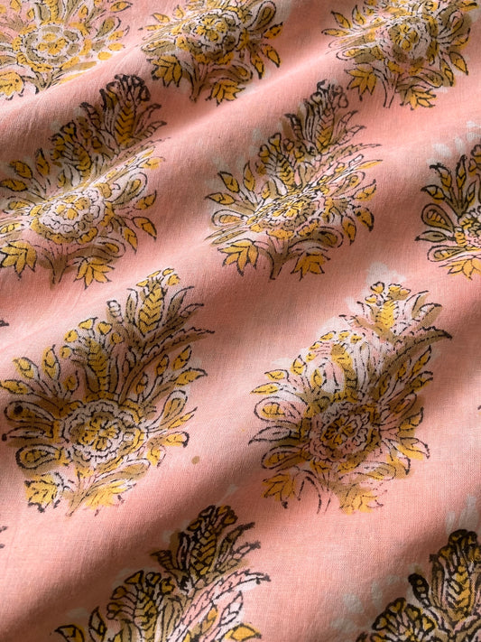 ハンドブロックプリント コーラル 花柄 コットンプリント生地 #265-7