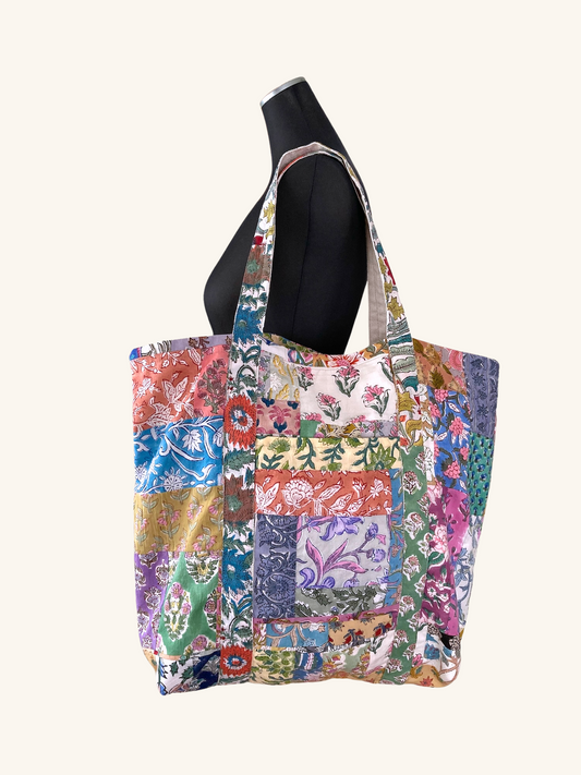 ブロックプリント生地 カラフル パッチワーク トートバッグ