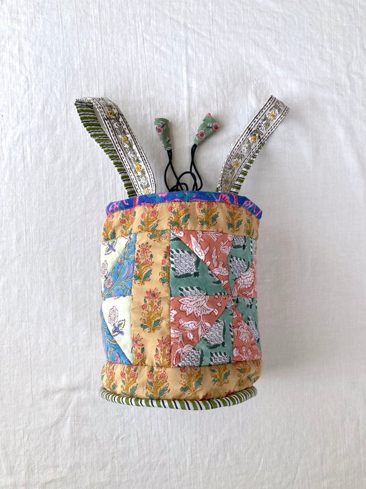 ハンドブロックプリント生地 パッチワーク バケツ型 巾着バッグ