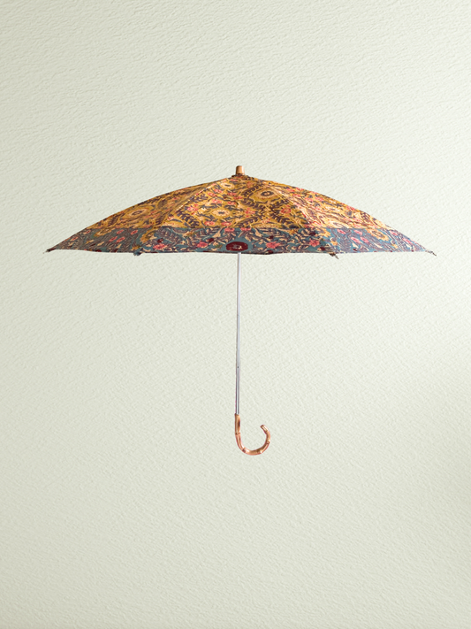 ブロックプリントコットン生地 バンブーハンドル カラーブロック 日傘