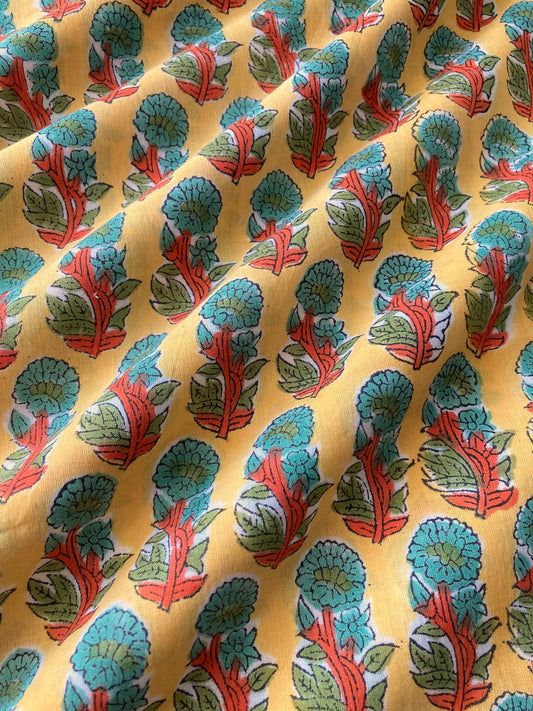ハンドブロックプリント イエロー 花柄 コットンプリント生地 #249-24