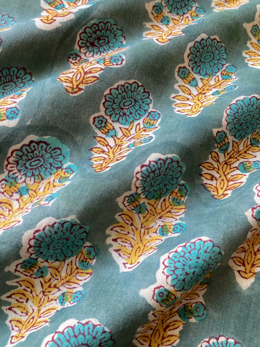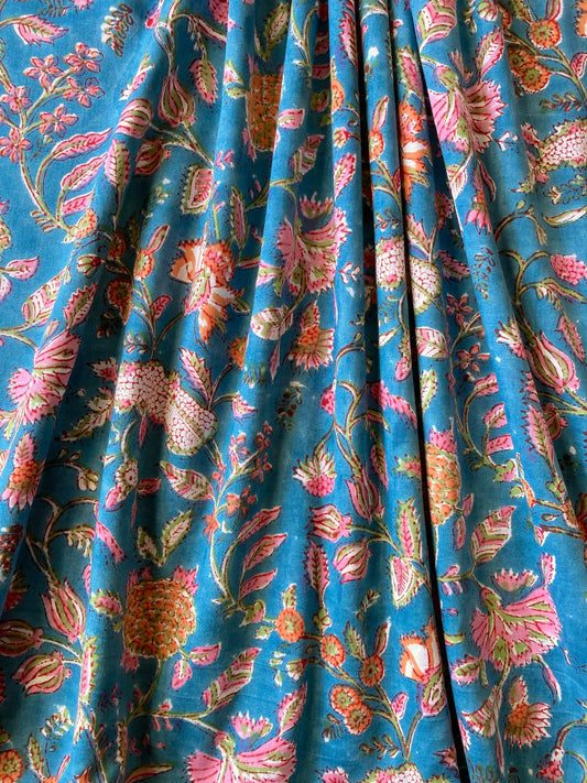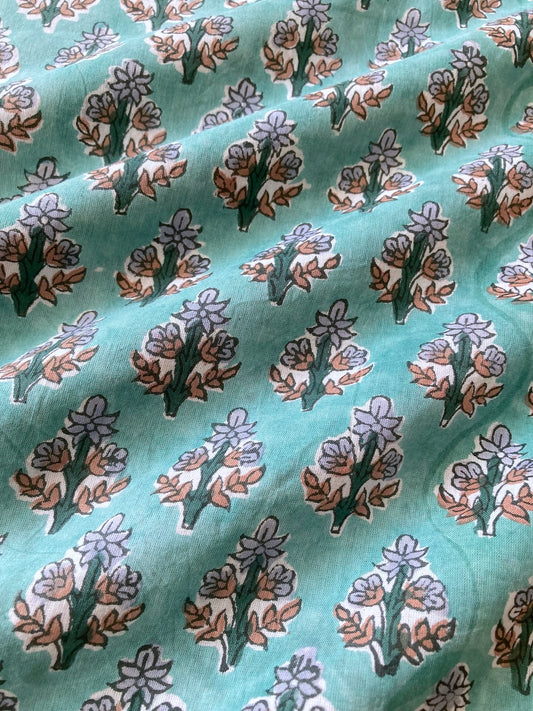 ハンドブロックプリント ターコイズ コットンプリント生地 #264-11