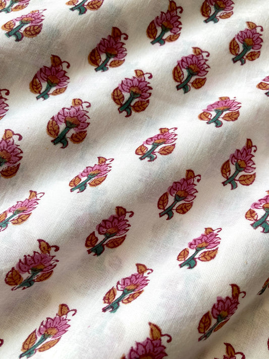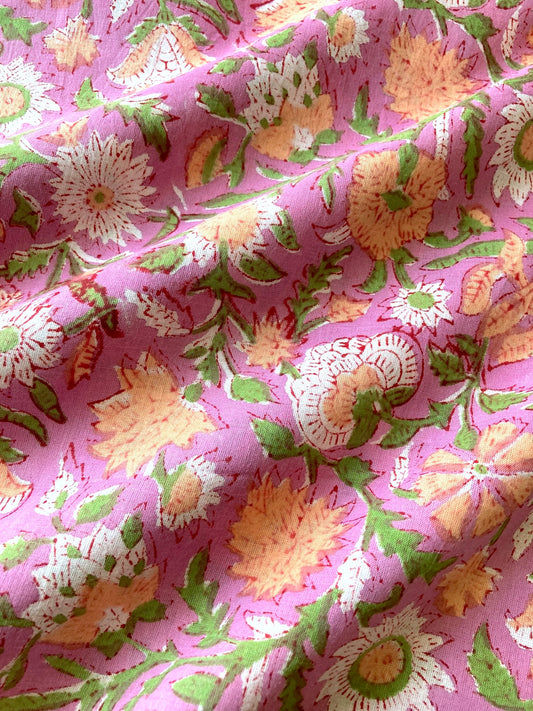 ハンドブロックプリント ピンク 花柄 コットンプリント生地 #264-2