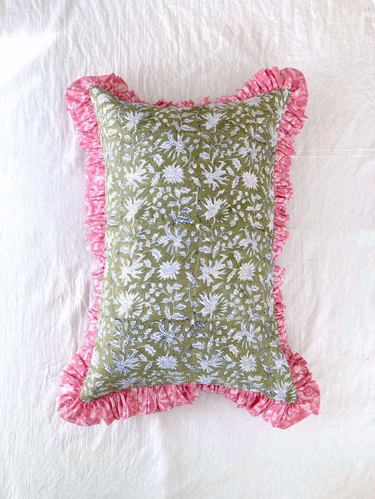 【custom order】インド綿ハンドブロックプリント フリルピローカバー Ruffle Pillow #rec