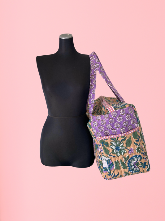 ハンドブロックプリント キルティング トラベル ボストンバッグ weekend bag