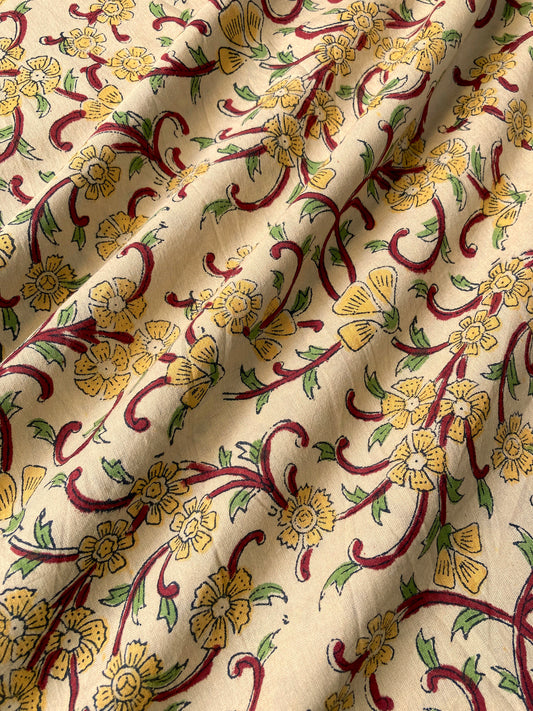 ハンドブロックプリント ナチュラルベージュ バグルー コットン生地 #179-2