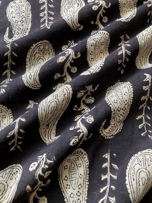 【 pre-cut 80cm】ハンドブロックプリント バグルー ブラック ペイズリー コットン生地 #230-10