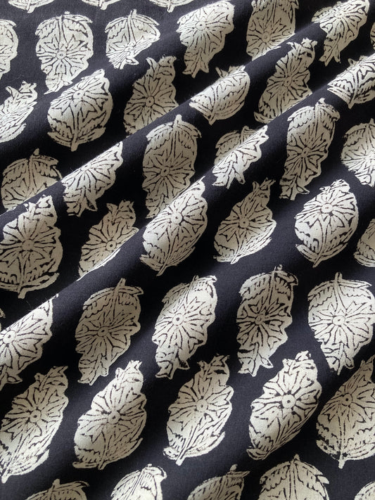 【 pre-cut 20cm 】ハンドブロックプリント バグルー ブラック コットン生地 #230-13