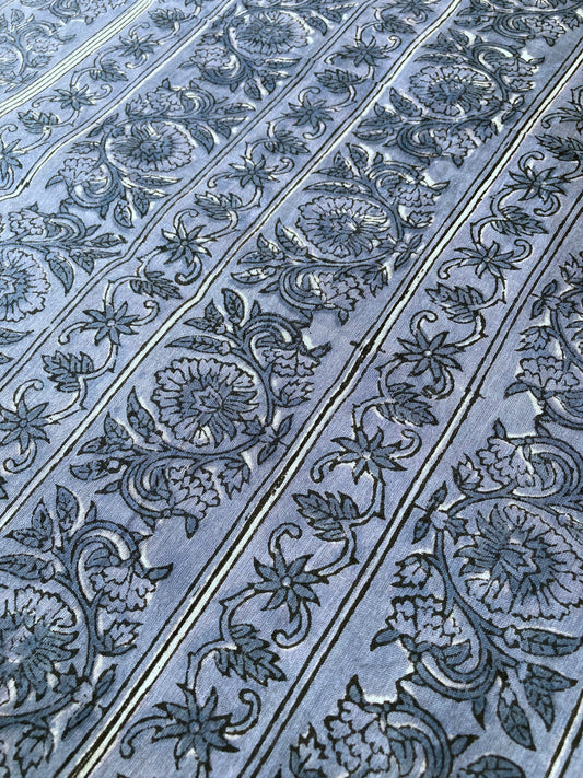 【 pre-cut 40cm】ハンドブロックプリント ブルーグレー 花柄 コットンプリント生地 #230-35