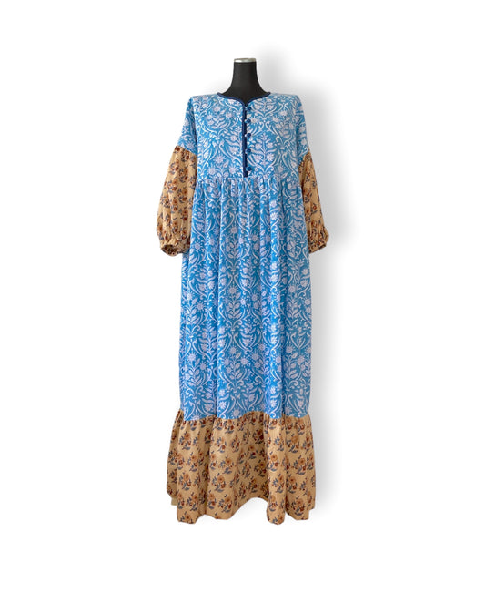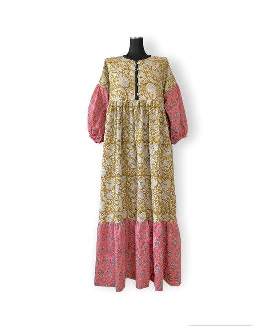 ブロックプリント生地 カラーブロック ロングガウン #Shima