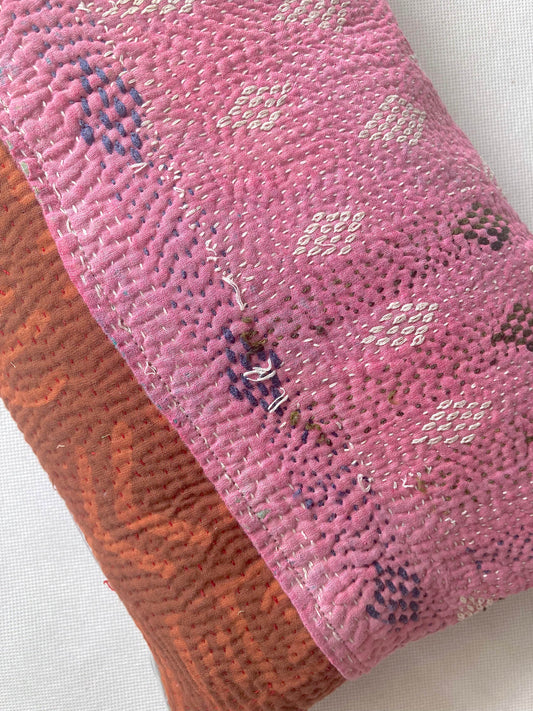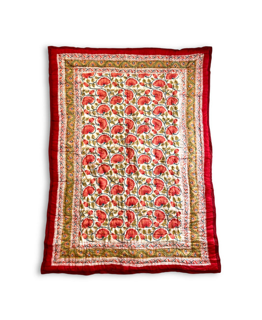 インド ハンドブロックプリント リバーシブル スモールサイズ キルト Red