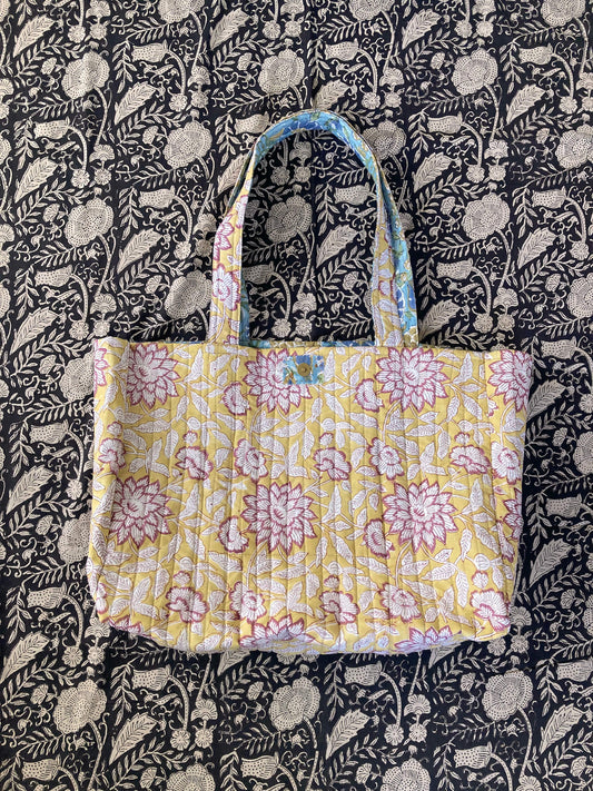 ハンドブロックプリントキルティングトートバッグ #daybag-L