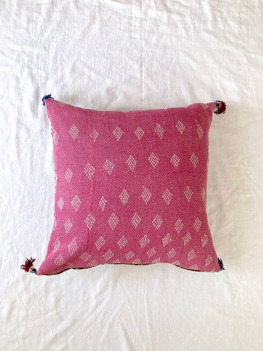 ヴィンテージ インド 手刺繍 カンタキルトxアフガンビーズ装飾 クッションカバー