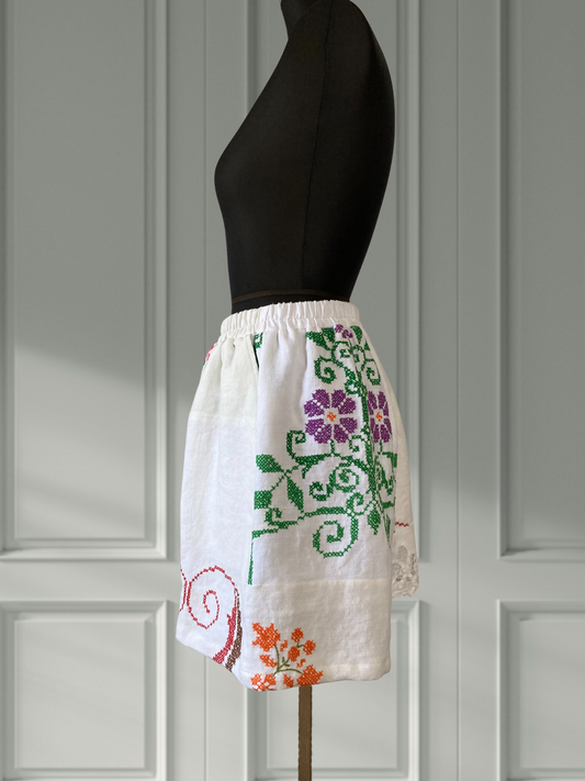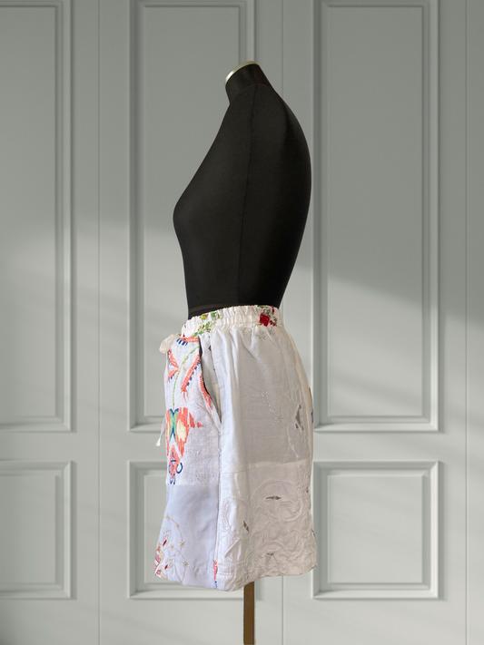 ヴィンテージ 刺繍 リネン 生地 パッチワーク ショートパンツ