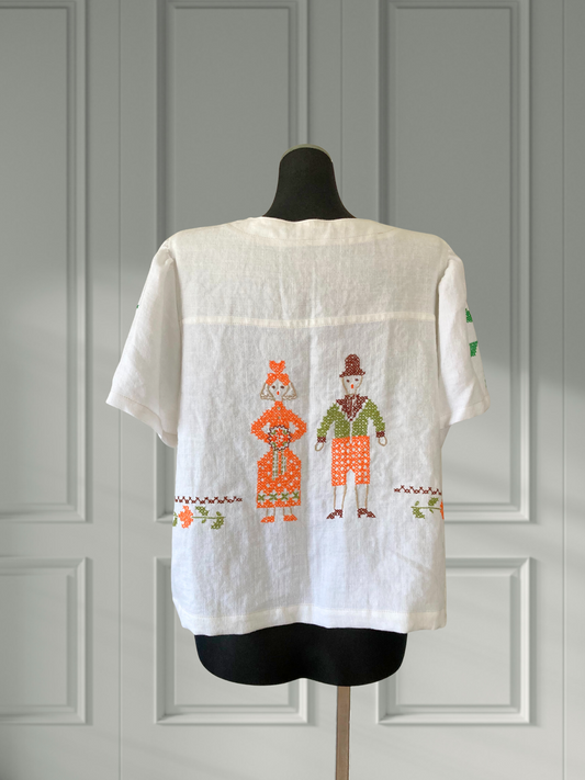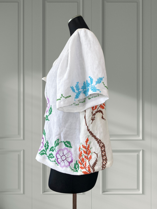 ヴィンテージ リネン 刺繍 リボン 羽織り 半袖シャツ