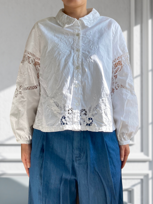 ヴィンテージ コットンバテンレースクロス アップサイクル ボタンシャツ リメイク