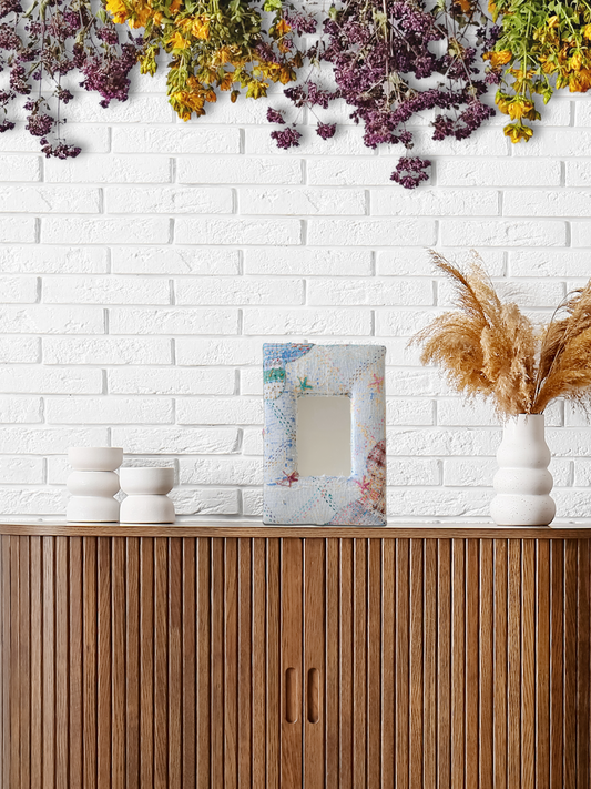 ヴィンテージ ラリーキルト パッチワーク 刺繍 フレーム ミラー 壁掛け