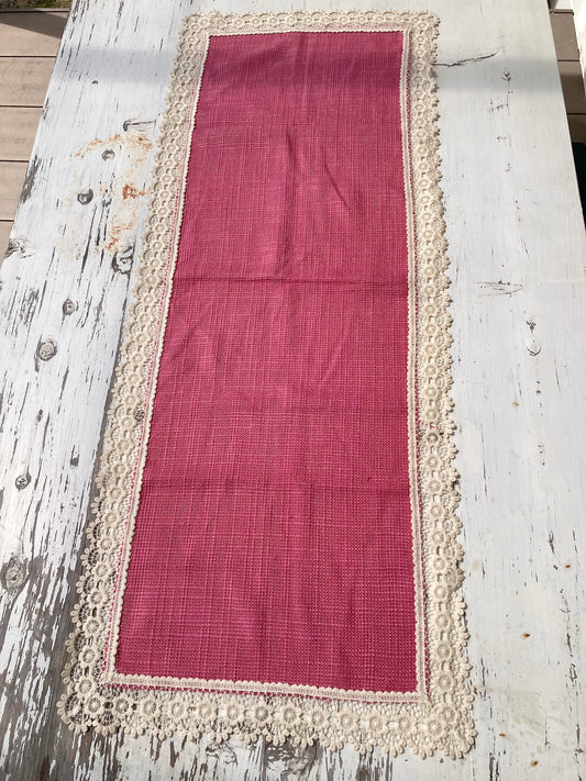 ヴィンテージ コットンピンクxアイボリーレース テーブルランナー マット リネン
