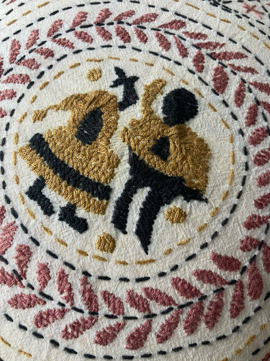 ヴィンテージ インド 手刺繍 コットン クッションカバー