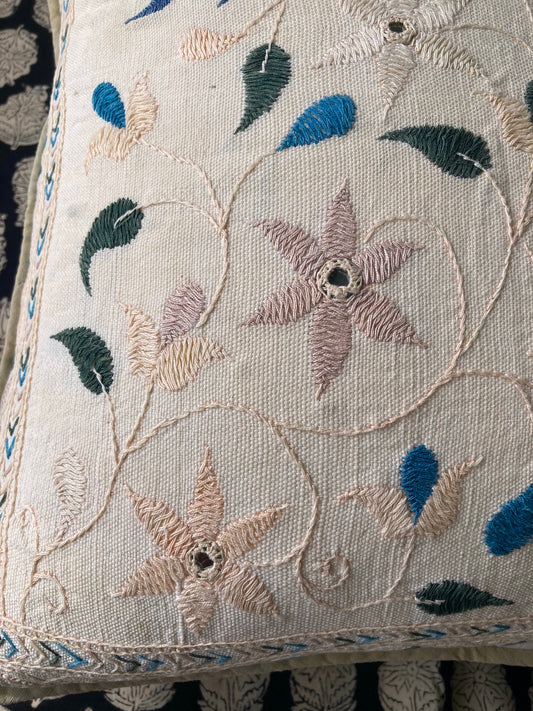 ヴィンテージ インド ミラー刺繍 コットン クッションカバー