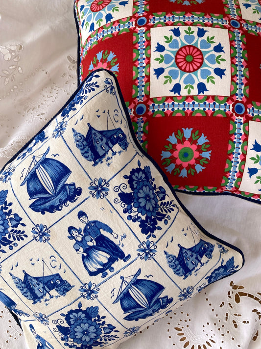 ヴィンテージ オランダ ブルー フォークロアプリント クッションカバー