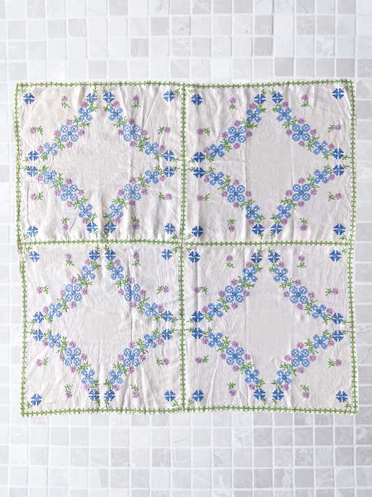 ヴィンテージ 西ドイツ製 クロスステッチ スクエア マルチクロス 手刺繍