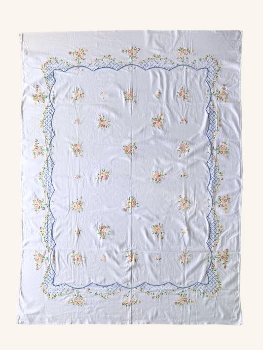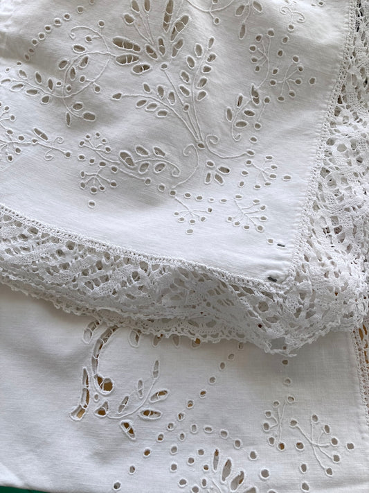 ヴィンテージ ホワイト コットン アイレットカットワーク 刺繍 テーブルクロス