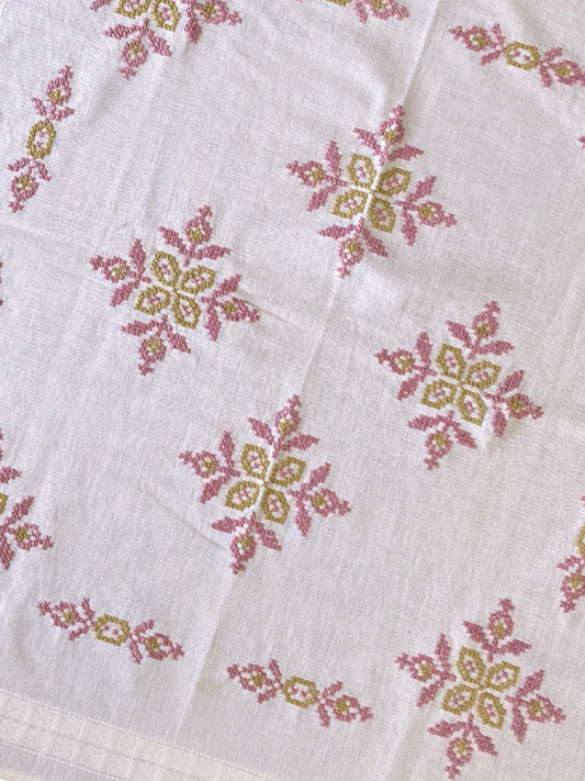ヴィンテージ リネン クロスステッチ スクエア マルチクロス 麻 手刺繍