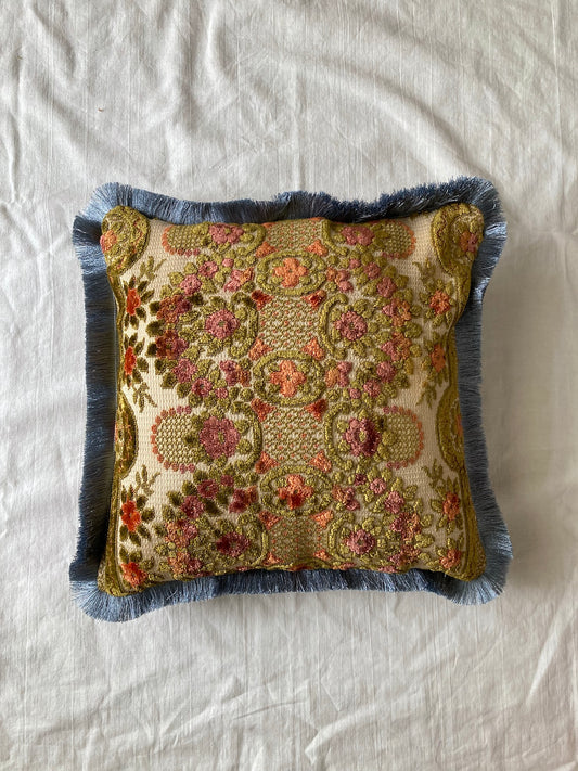 ヴィンテージ ベルベット お花柄 フリンジ クッションカバー
