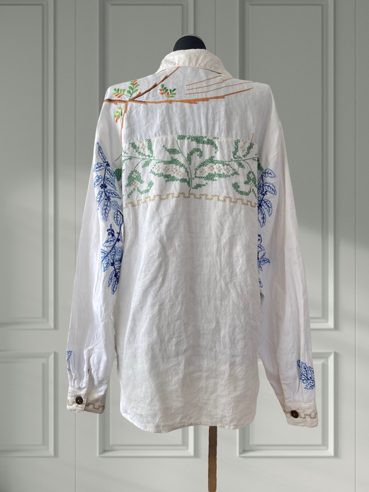 ヴィンテージ クロス刺繍 アップサイクル ボタンシャツ 刺繍クロス リメイク