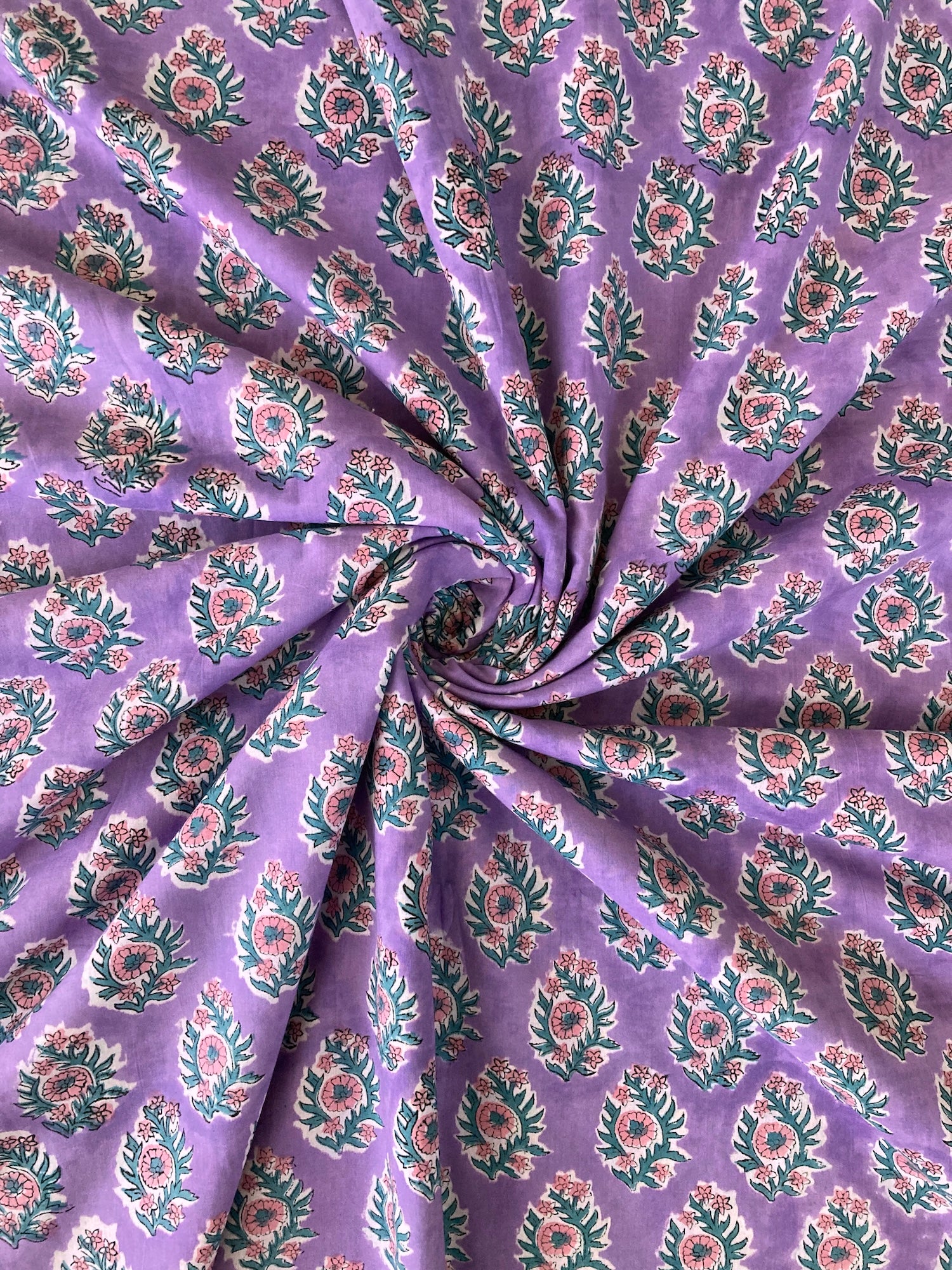 ハンドブロックプリント パープル 花柄 コットンプリント生地 #273-3